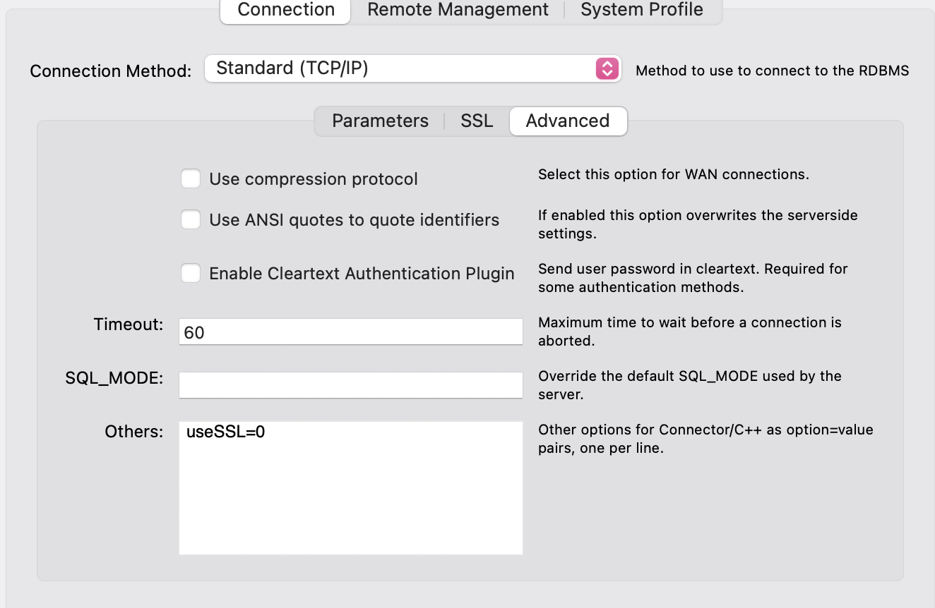SSL 연결 설정이 Require 되어 있어 나는 에러라고 한다.