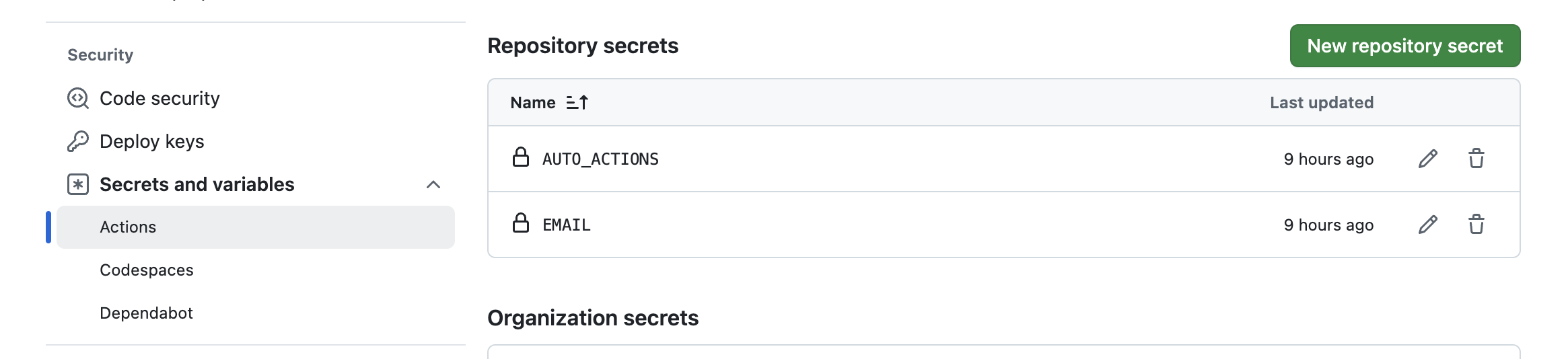 Organization Repo Setting -> Secrets and variables -> Actions -> Repository secrets